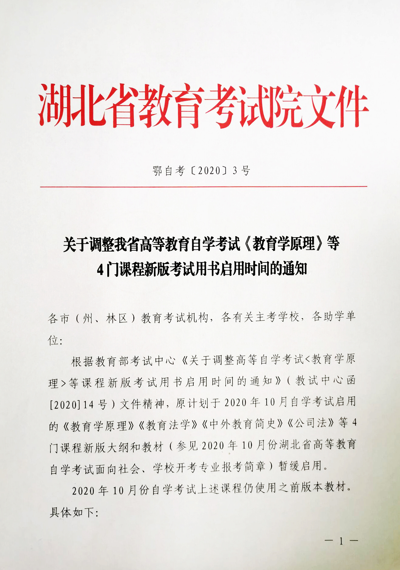 下一篇:2020年8月湖北省自學考試面向社會開考專業課程教材