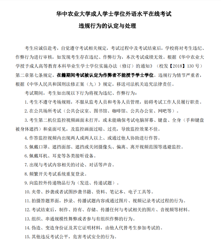 10.考試過程中及考試結束后,學校將統一對考生考中的異常、違紀、作弊行為進行審核,如核實發現存在違規違紀、作弊行為,本次考試成績無效。