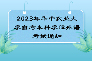 有報考華中農業大學自考本科的同學嗎?近期,華中農業大學繼續教育學院發布了2023年華中農業大學自考本科生申請學士學位外語考試通知,具體考試安排如下: