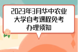 2023年3月華中農業大學自考課程免考辦理須知已經出來了,辦理時間就在本月,有相關需求的考生留意一下喲!詳情內容如下:
